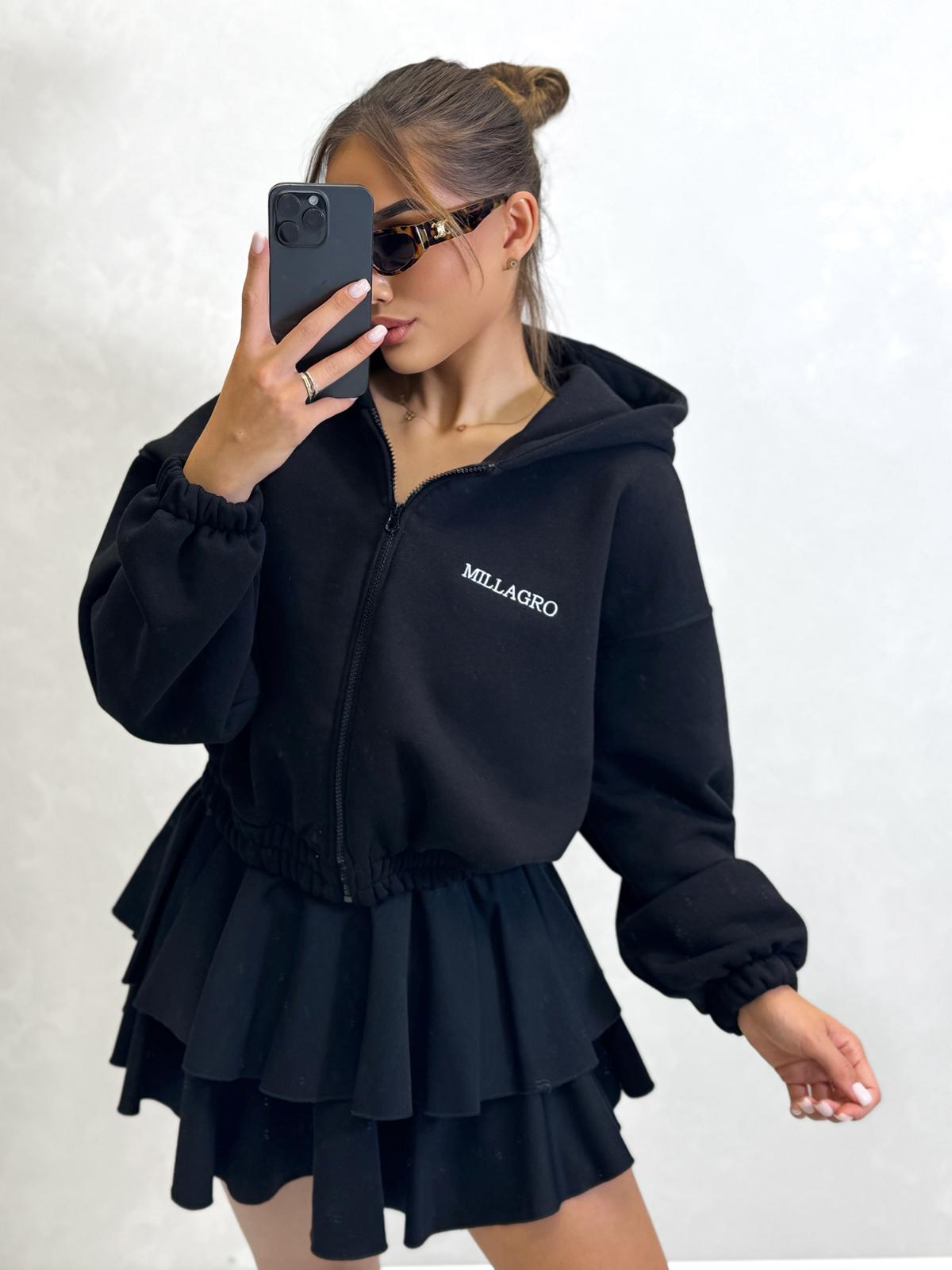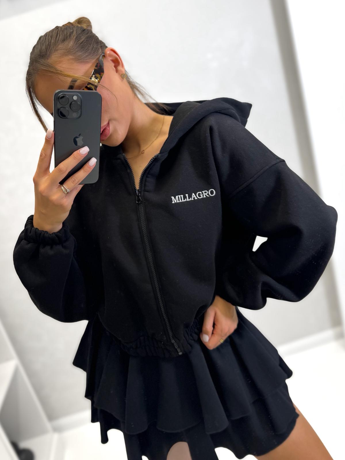 Bluza rozpinana Milla o luźnym kroju z kapturem, ocieplana. Bluza wykonana z wysokiej jakości tkaniny De Lux bardzo przyjemnej i delikatnej w dotyku. Polska produkcja.