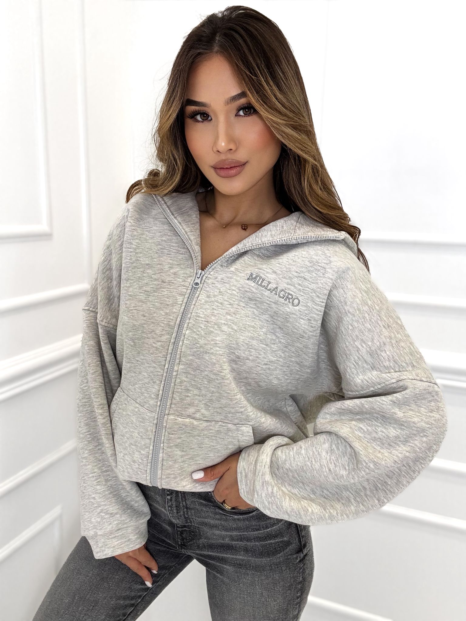 Be the first to review “Bluza rozpinana Milla long / Szary melanż”