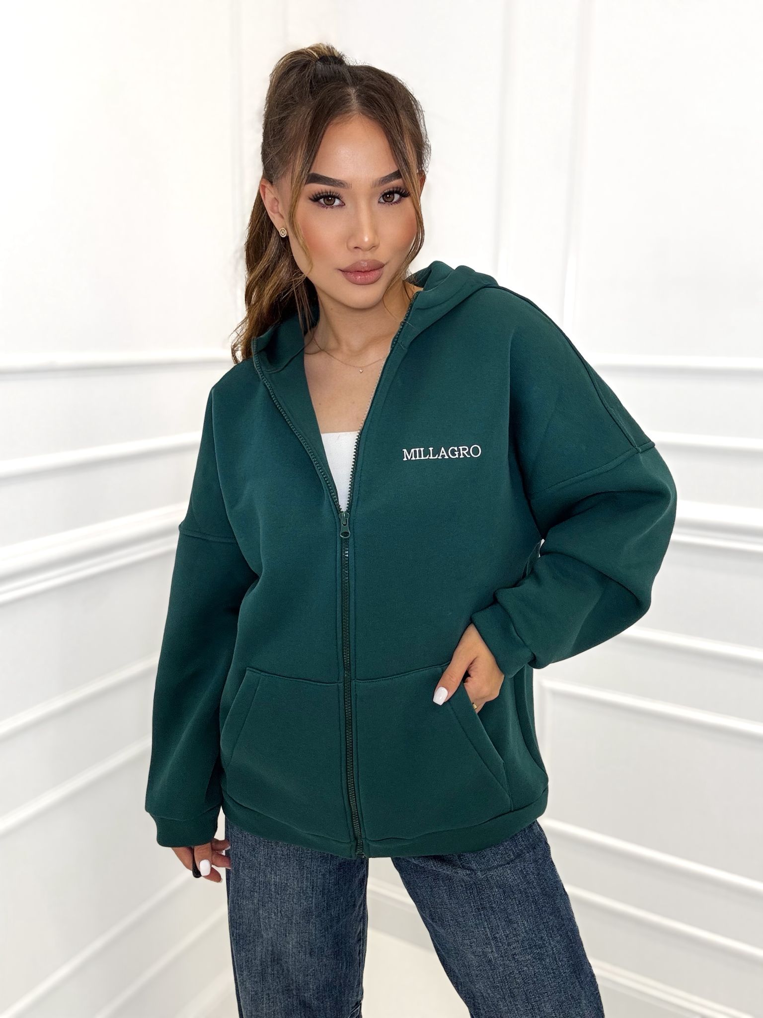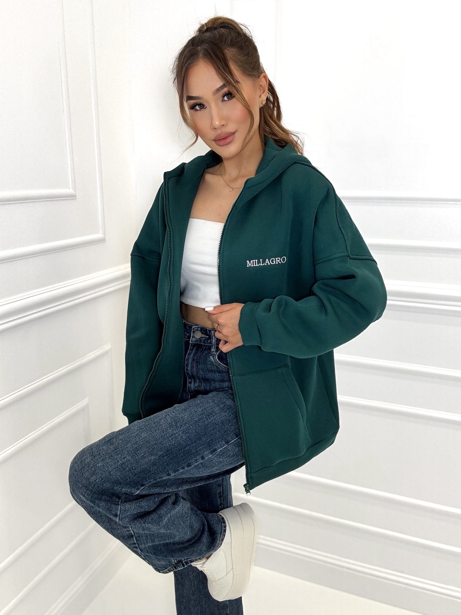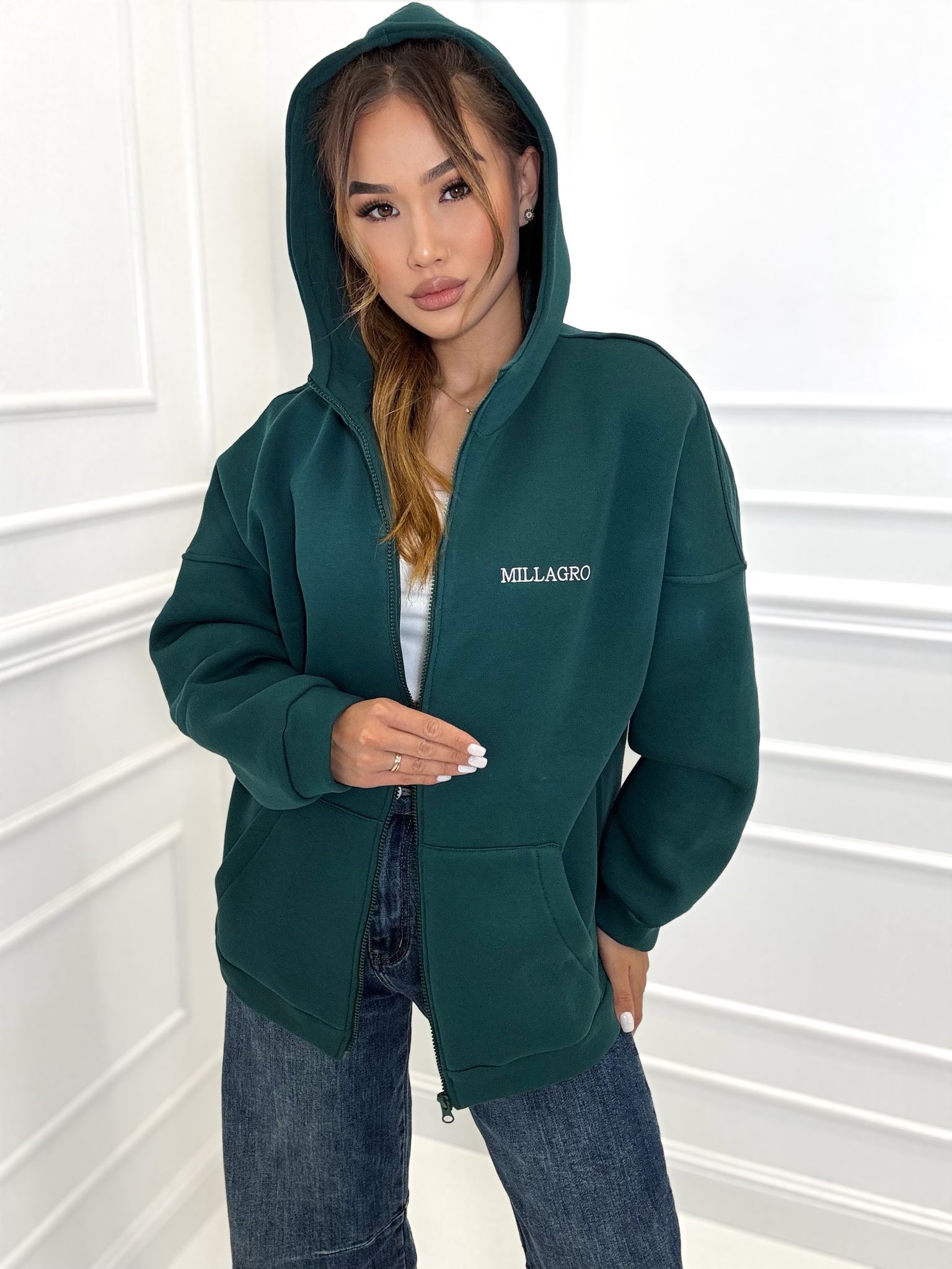 Bluza rozpinana Milla long o luźnym kroju z kapturem, ocieplana. Bluza wykonana z wysokiej jakości tkaniny De Lux bardzo przyjemnej i delikatnej w dotyku. Polska produkcja.