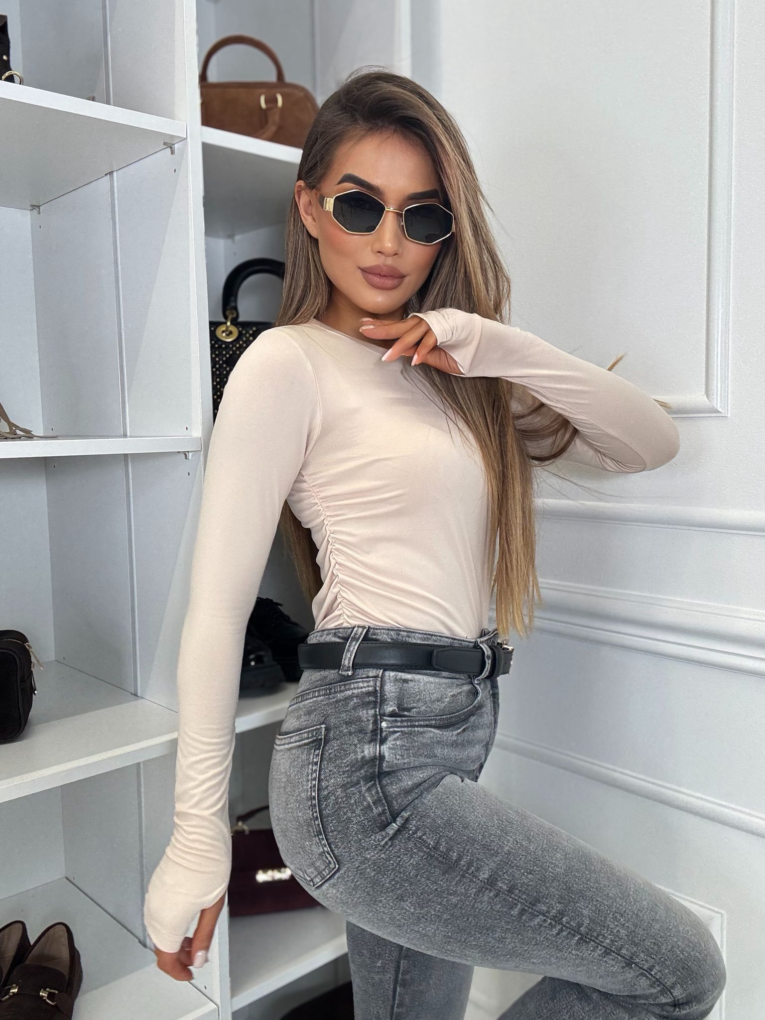 Gładka bluzka na paluszek i marszczeniami w przepięknych jesiennych kolorach, bluzka wykonana z wysokiej jakości tkaniny De Lux przyjemnej w dotyku. Polska produkcja.