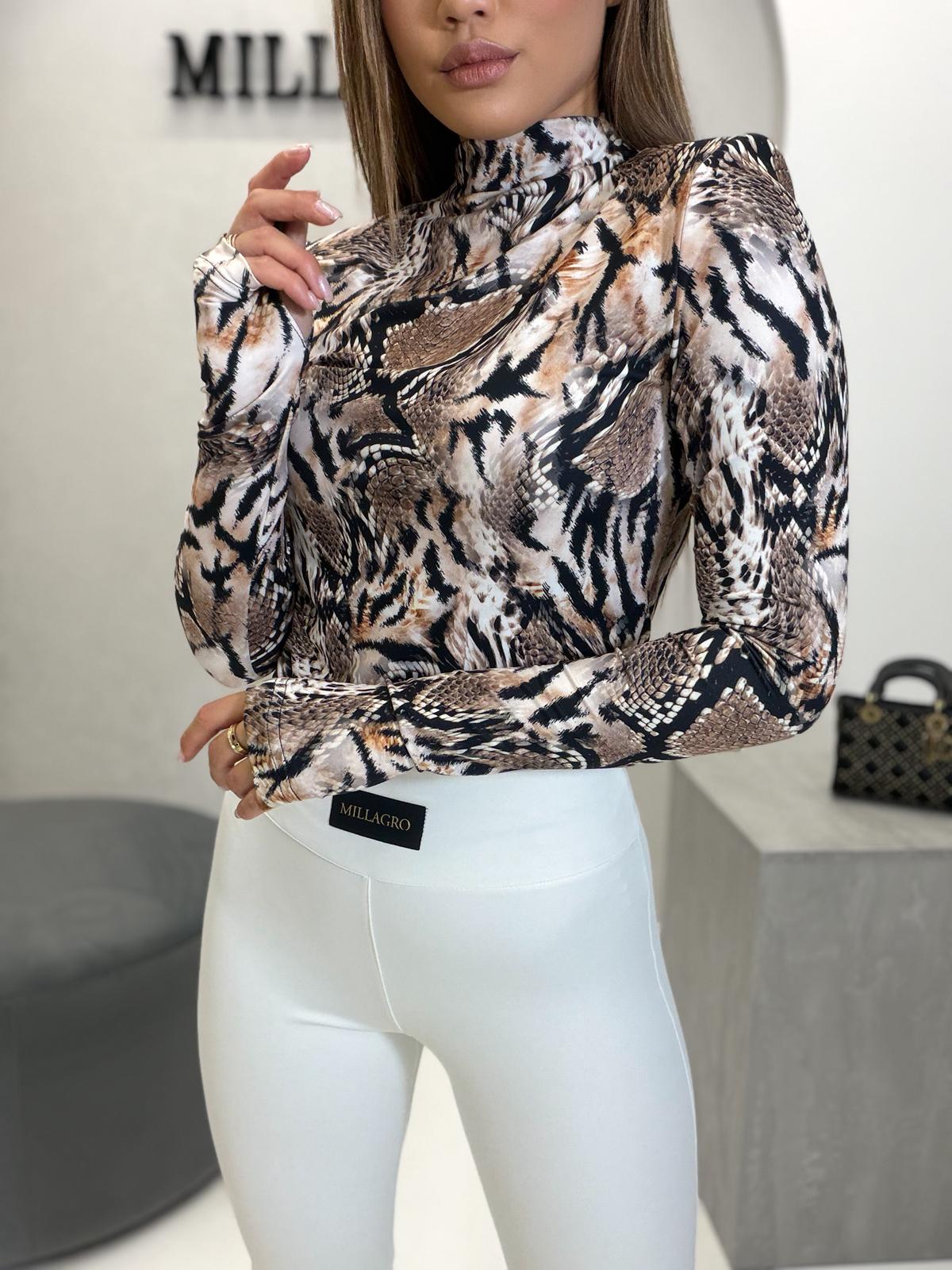 Podkreśl swój wyjątkowy styl z naszą bluzką, która łączy w sobie zmysłowość i nowoczesną elegancję. Wykonana z elastycznego, dopasowującego się do sylwetki materiału, gwarantuje komfort noszenia. Polska produkcja.