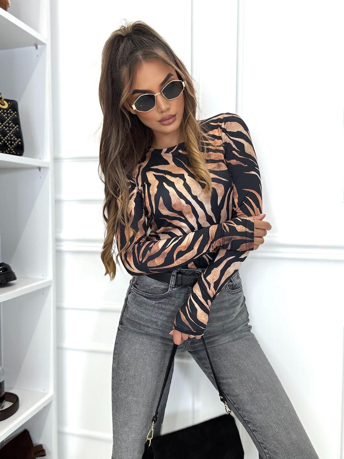 Bluzka na paluszek i marszczeniami w przepięknych printach kwiatowych i zwierzęcych, bluzka wykonana z wysokiej jakości tkaniny De Lux przyjemnej w dotyku. Polska produkcja.