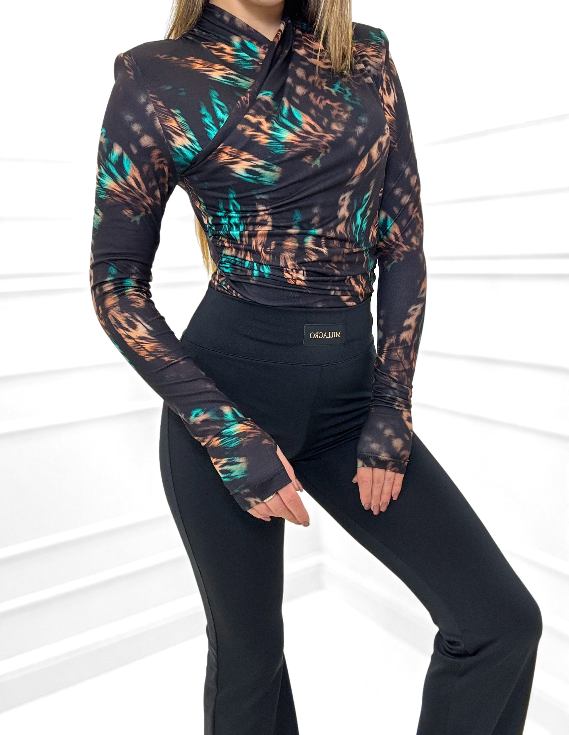 Podkreśl swój wyjątkowy styl z naszą bluzką, która łączy w sobie zmysłowość i nowoczesną elegancję. Wykonana z elastycznego, dopasowującego się do sylwetki materiału, gwarantuje komfort noszenia. Polska produkcja.