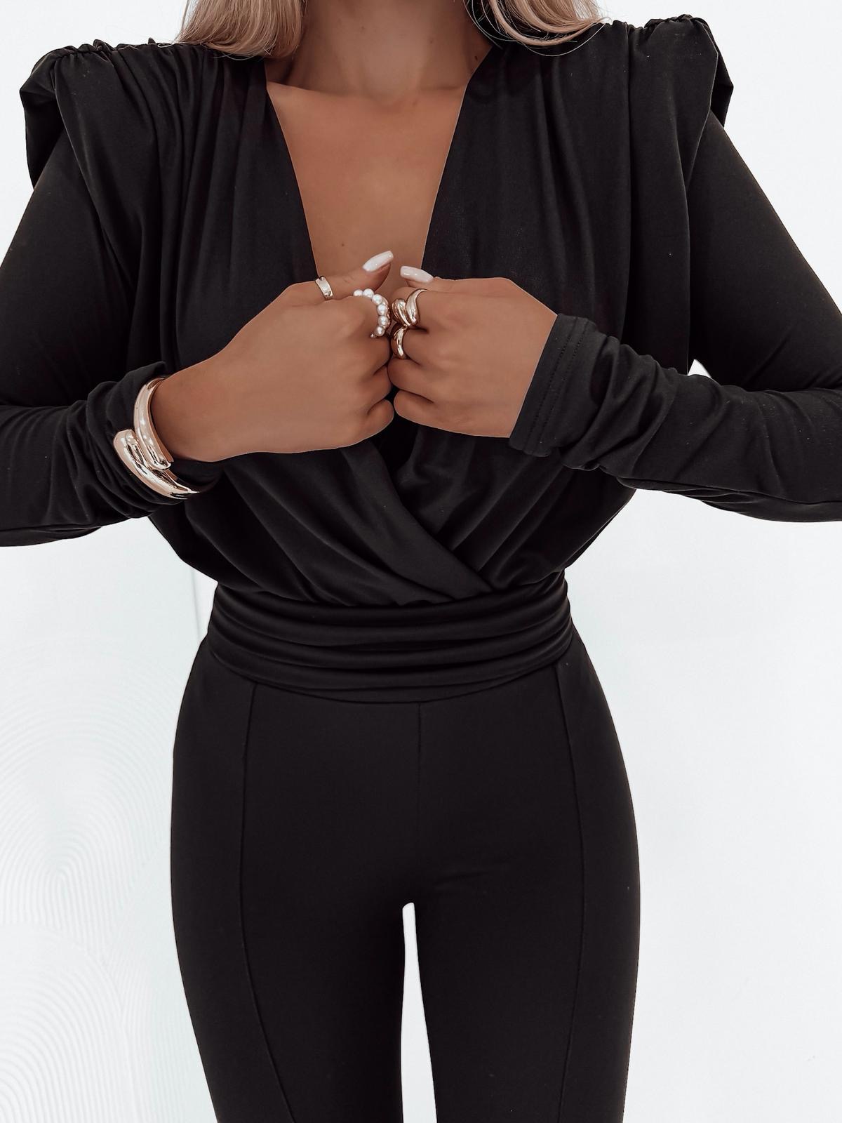 Poczuj moc i pewność siebie w naszym body VELORA, które łączy w sobie zmysłowy krój. Model z delikatnie usztywnionymi ramionami podkreśla sylwetkę i nadaje stylizacji charakteru. Dzięki kopertowemu dekoltowi pięknie eksponuje dekolt, a elastyczny materiał dopasowuje się do kształtów ciała, zapewniając komfort przez cały dzień. Polska produkcja.