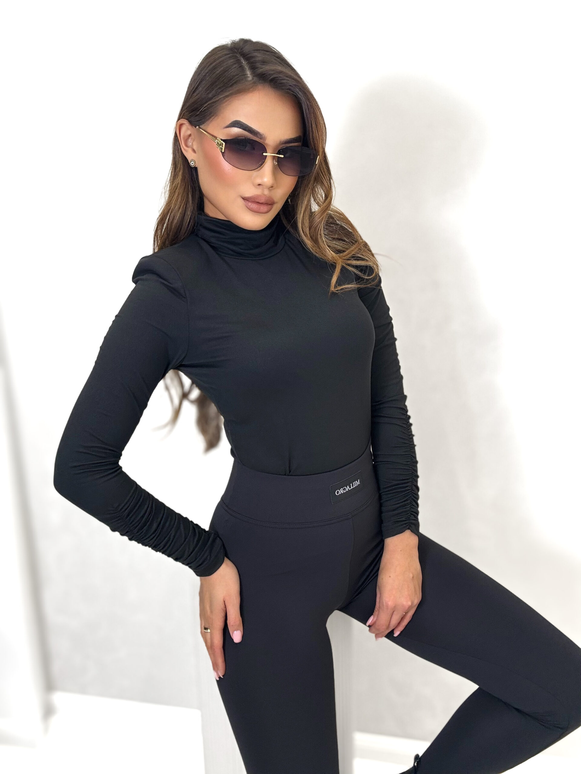 Golf to połączenie minimalizmu i elegancji w nowoczesnym wydaniu. Wykonana z elastycznego, lekko połyskującego materiału, idealnie dopasowuje się do sylwetki, podkreślając jej atuty. Wysoki golf oraz subtelne marszczenia na rękawach dodają całości szyku i klasy. Polska produkcja.