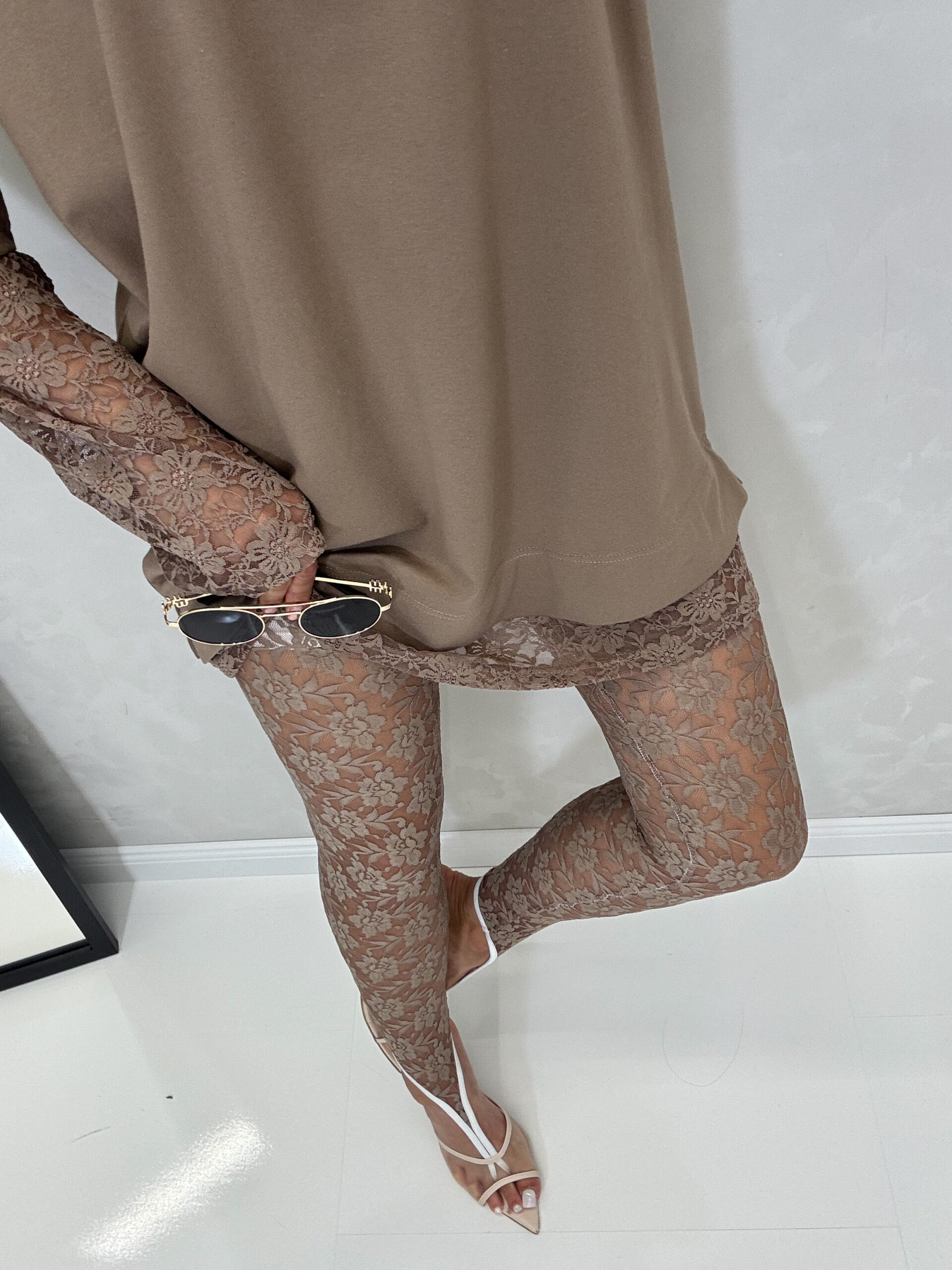 Przepiękne leginsy modelujące z ozdobnej koronki w kwiaty. Leginsy wykonane z wysokiej jakości tkaniny De Lux . Polska produkcja.