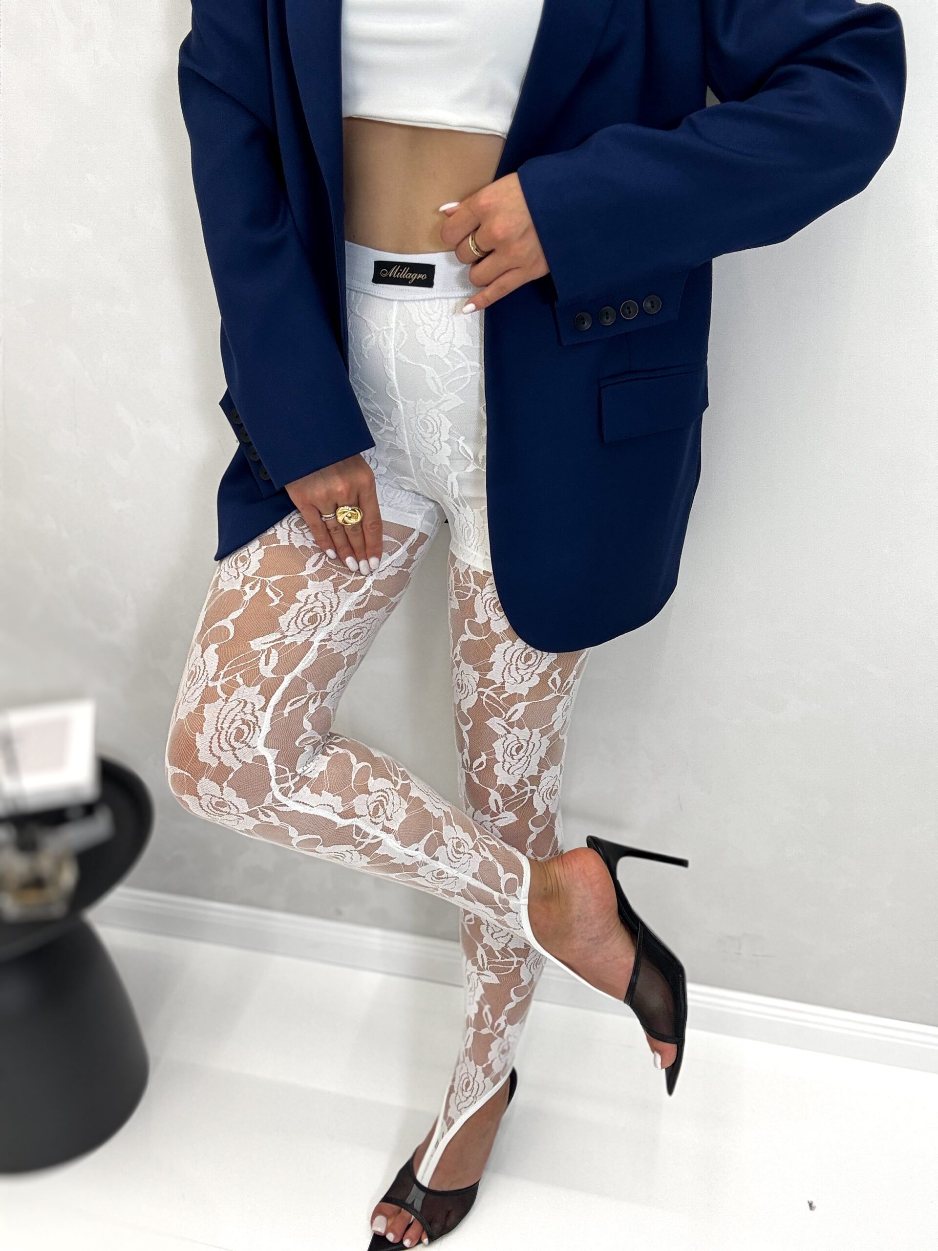 Przepiękne leginsy modelujące z ozdobnej koronki w kwiaty. Leginsy wykonane z wysokiej jakości tkaniny De Lux . Polska produkcja.