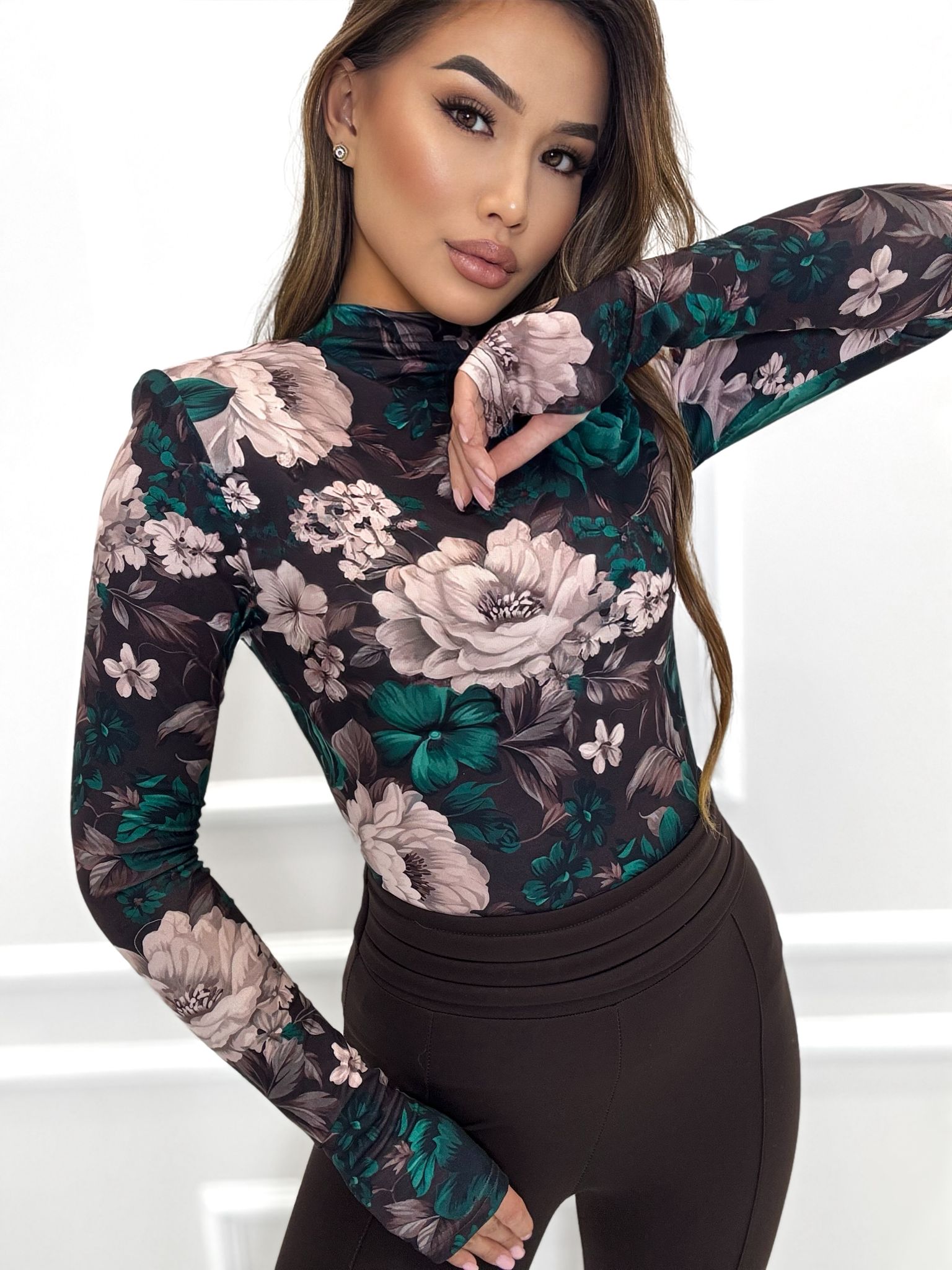 Pół golfik z rękawem na paluszek w przepięknych jesiennych printach, bluzka wykonana z wysokiej jakości tkaniny De Lux przyjemnej w dotyku. Polska produkcja.
