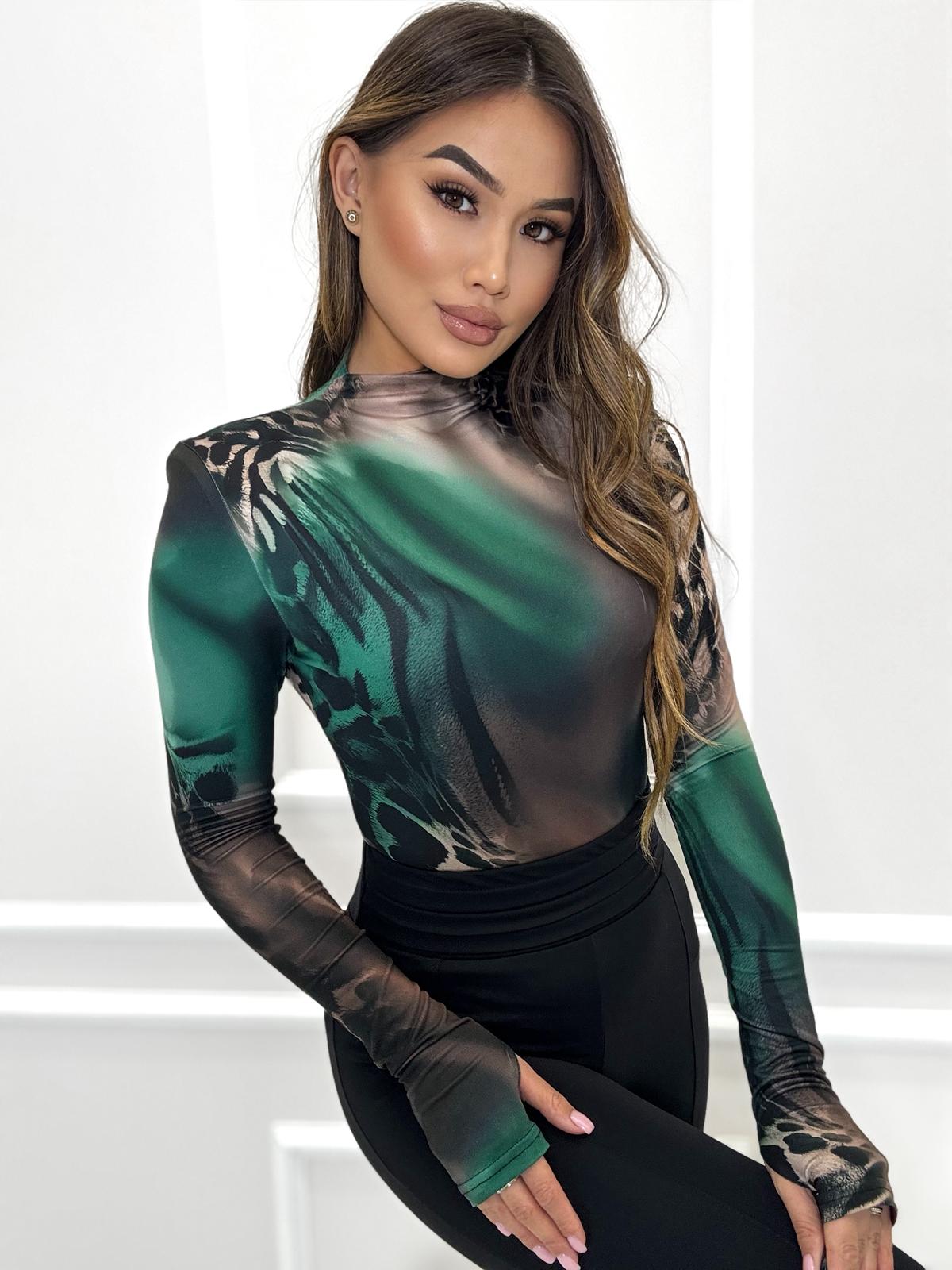 Pół golfik z rękawem na paluszek w przepięknych jesiennych printach, bluzka wykonana z wysokiej jakości tkaniny De Lux przyjemnej w dotyku. Polska produkcja.