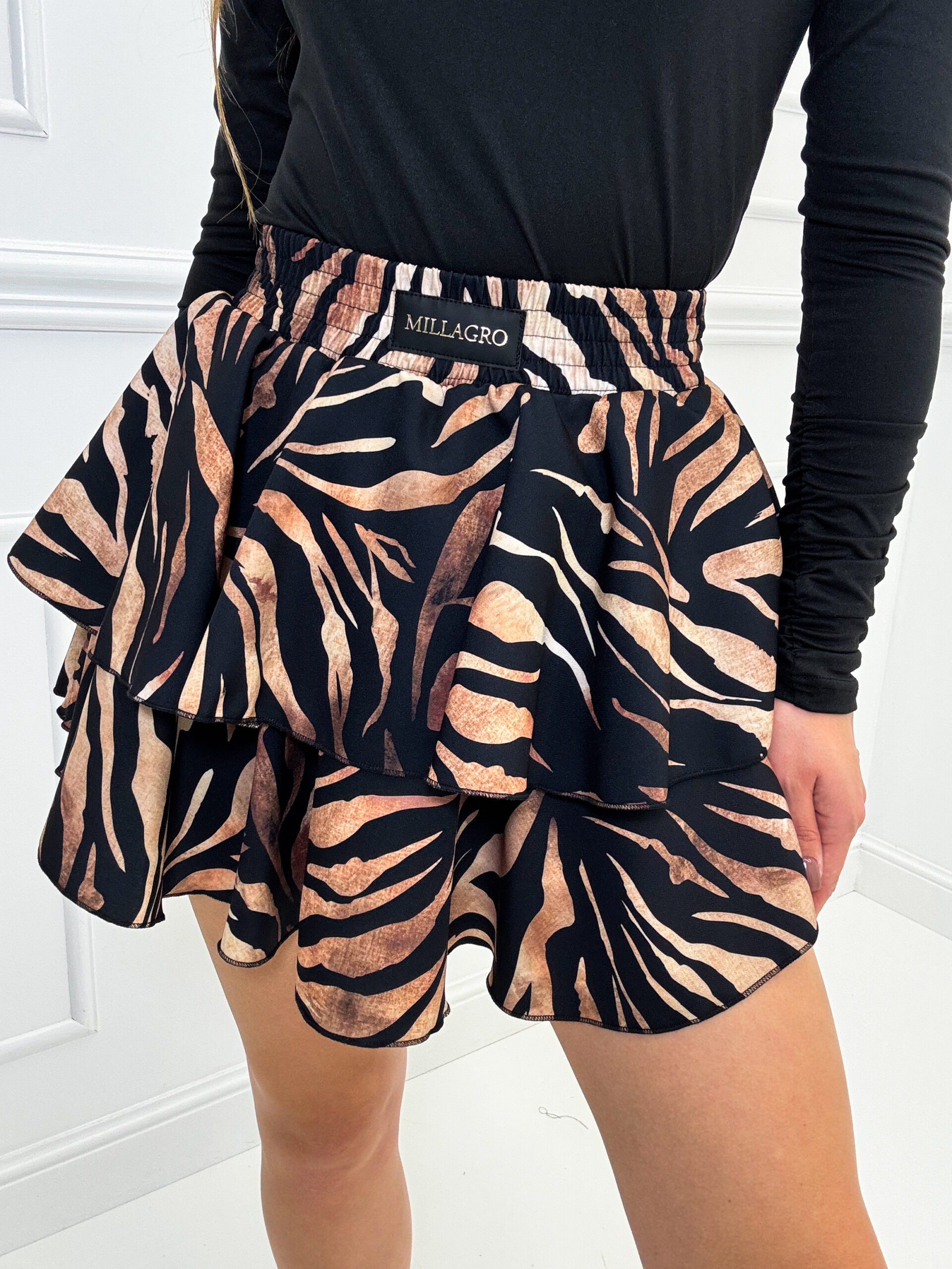 Subtelna elegancja spotyka nowoczesny komfort. Spódnico-spodenki, które łączą kobiecy, falbaniasty krój z wygodą i swobodą ruchu. Dzięki ukrytym szortom możesz czuć się pewnie w każdej sytuacji, zachowując lekki, stylowy look. Polska produkcja.