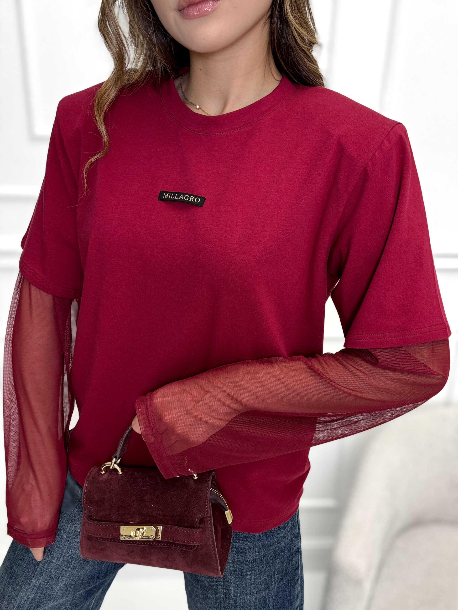 Miękkość, styl i odrobina tajemniczości. T-shirt ADELE siateczka zachwyca minimalistyczną formą i efektownymi transparentnymi rękawami, które dodają subtelnej elegancji. Idealny wybór na codzień i wieczór. Polska produkcja.