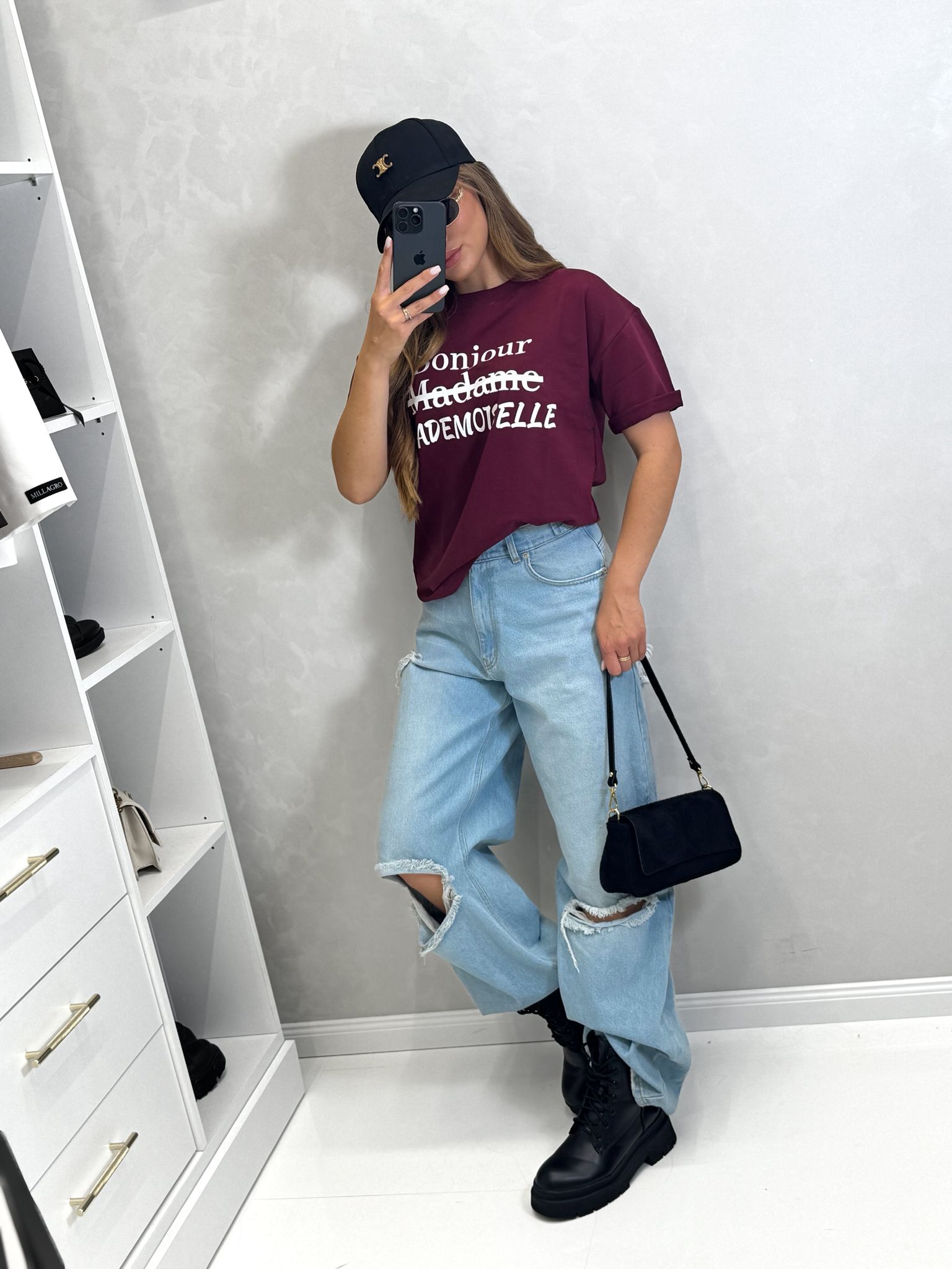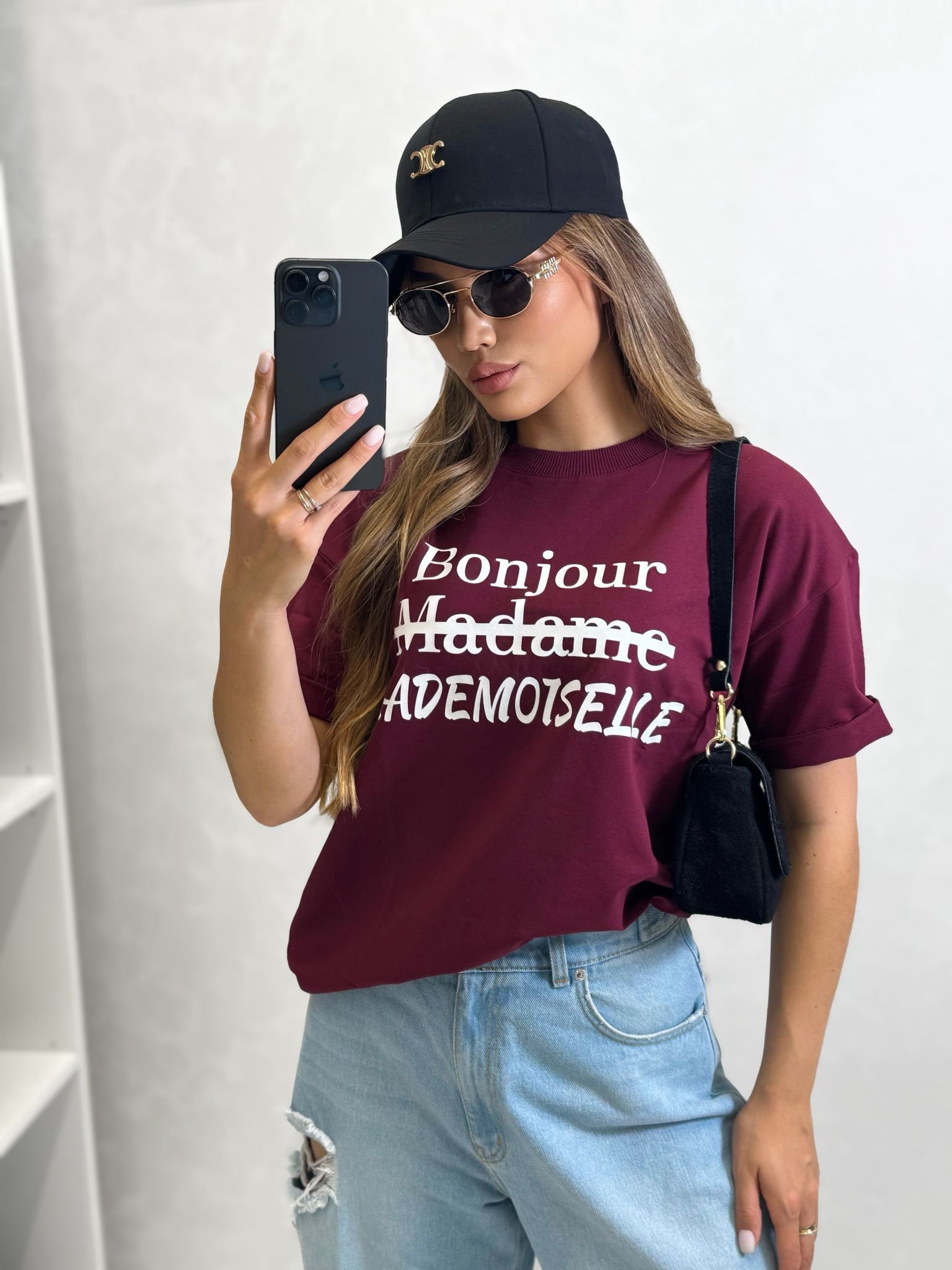 T-shirt Bonjour MADEMOISELLE o kroju slim, wykonany z wysokiej jakości tkaniny De Lux, dostępny w przepięknych kolorach. Polska produkcja.