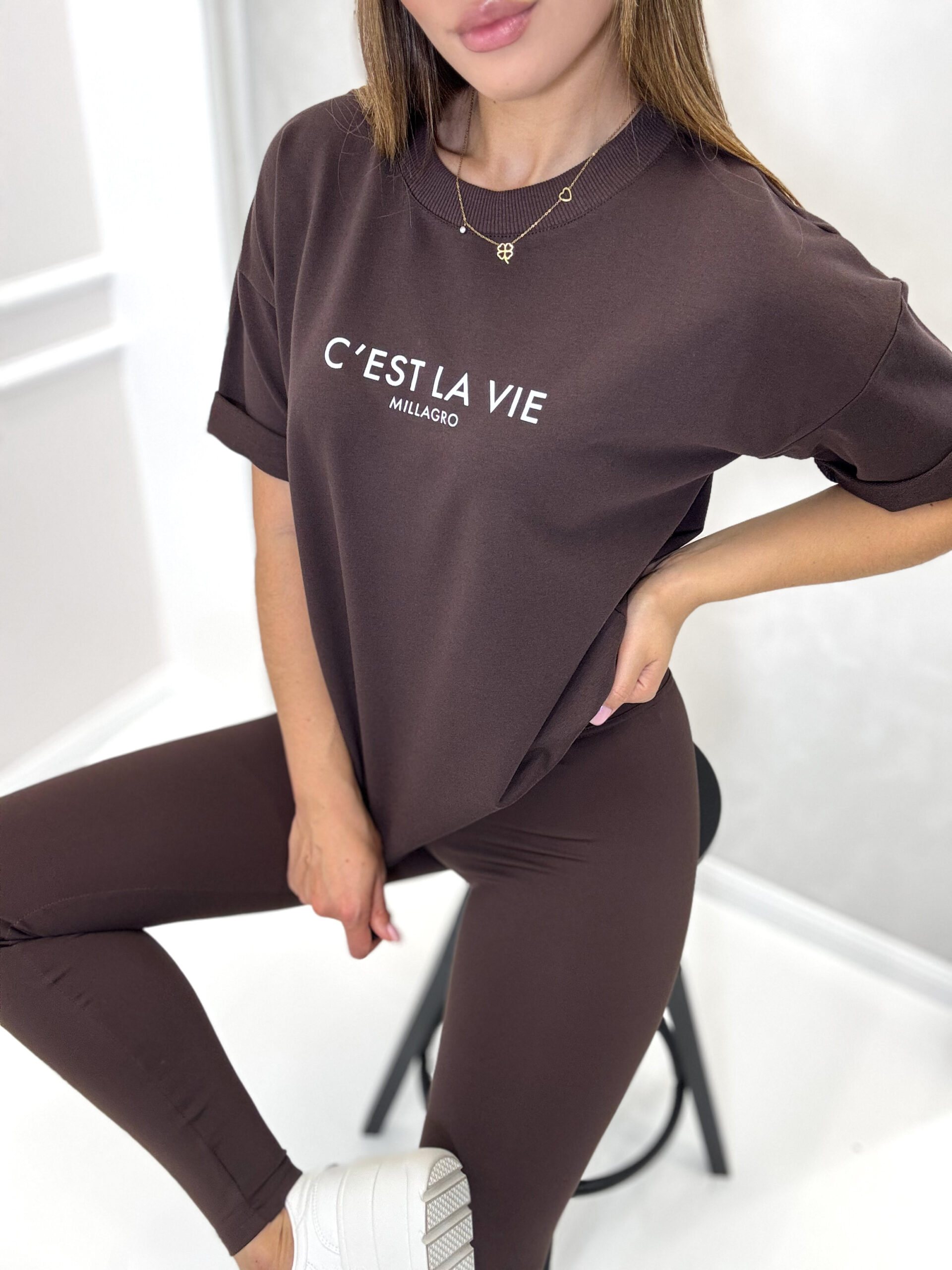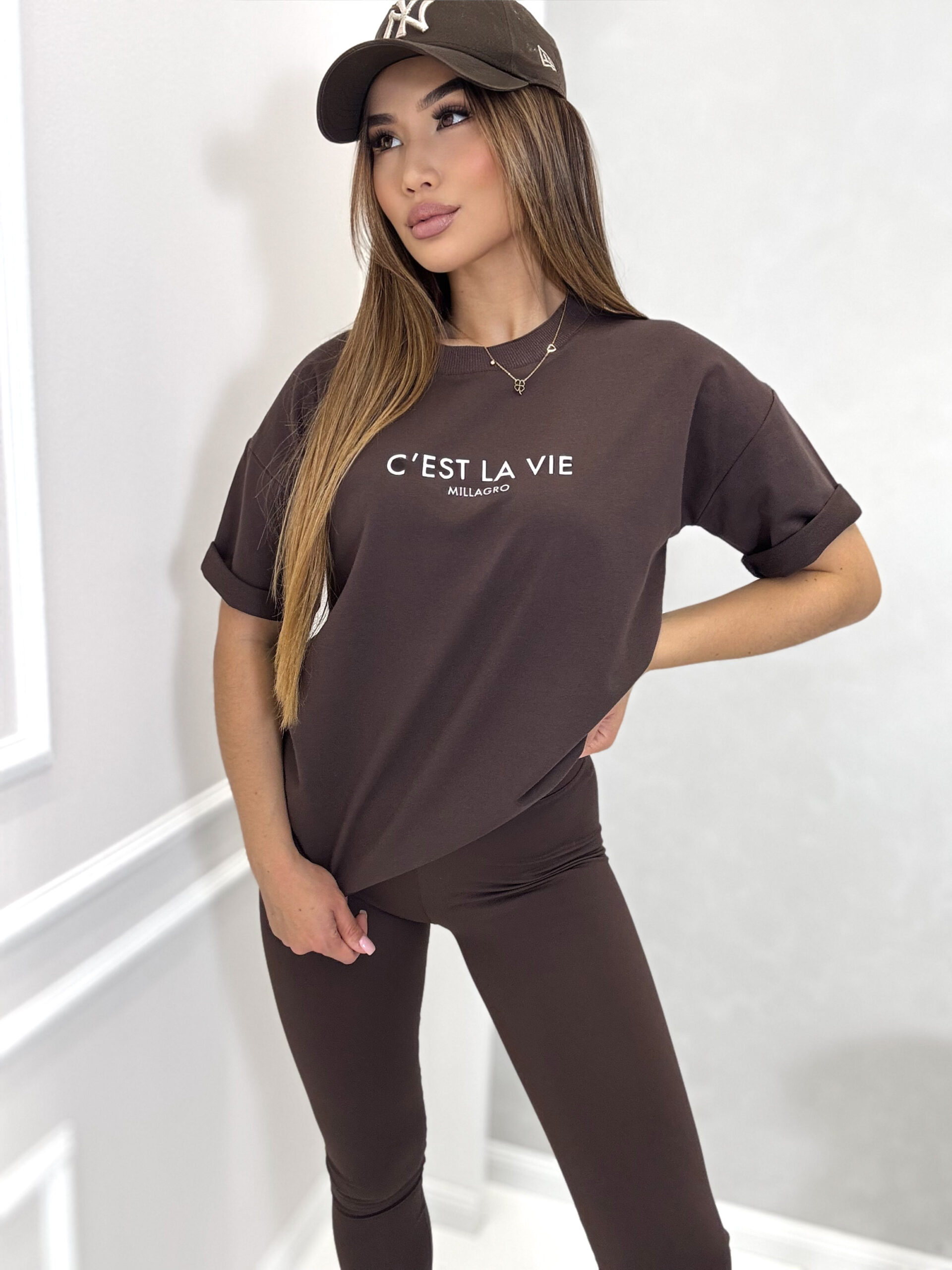 T-shirt C’EST LA VIE by MILLAGRO to idealne połączenie wygody i stylu. Wykonany z miękkiej, oddychającej bawełny, zapewnia komfort przez cały dzień. Dzięki klasycznemu krojowi oversize świetnie wygląda zarówno w casualowych, jak i bardziej stylowych zestawach – z jeansami, spódnicą czy legginsami. Polska produkcja.