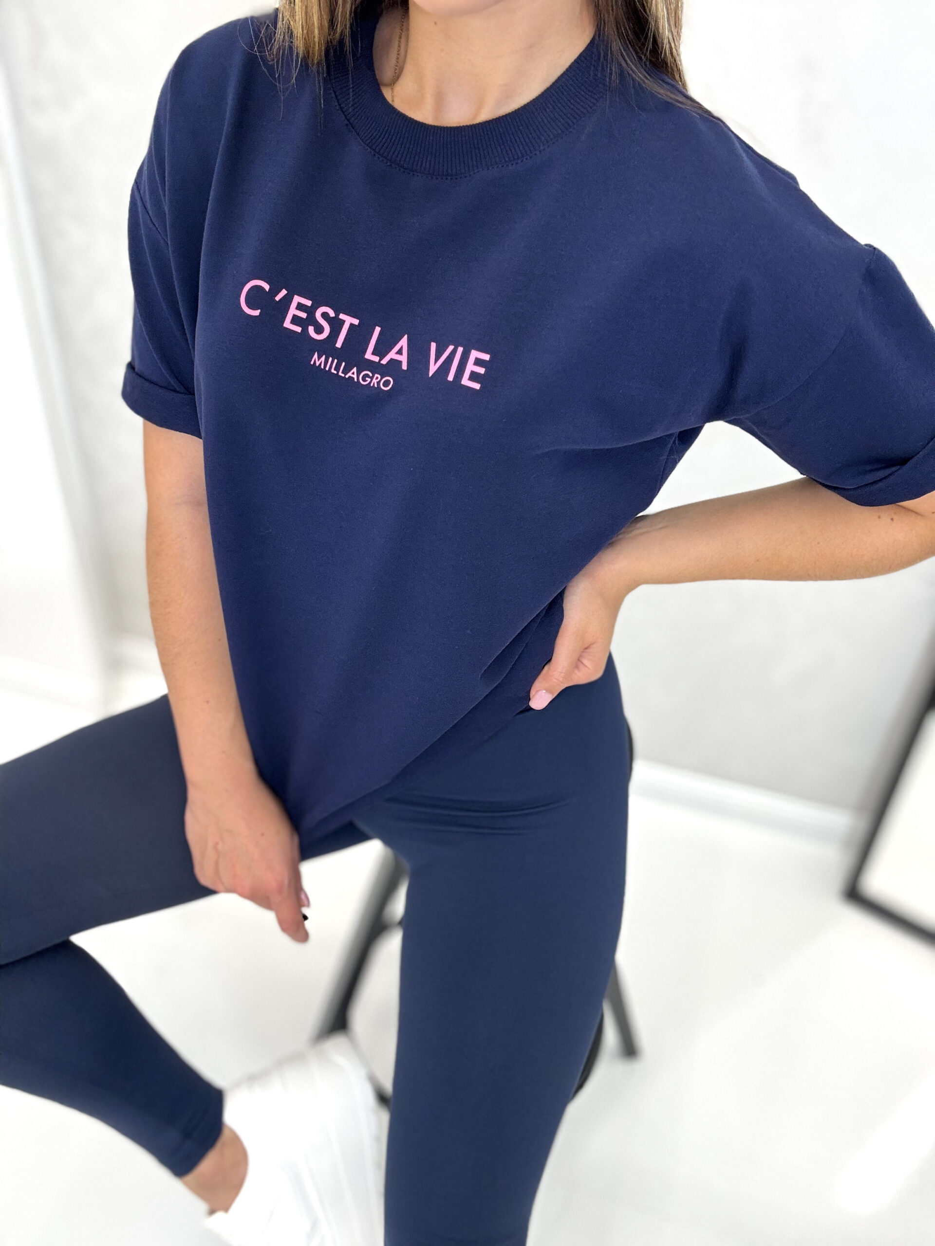 T-shirt C’EST LA VIE by MILLAGRO to idealne połączenie wygody i stylu. Wykonany z miękkiej, oddychającej bawełny, zapewnia komfort przez cały dzień. Dzięki klasycznemu krojowi oversize świetnie wygląda zarówno w casualowych, jak i bardziej stylowych zestawach – z jeansami, spódnicą czy legginsami. Polska produkcja.
