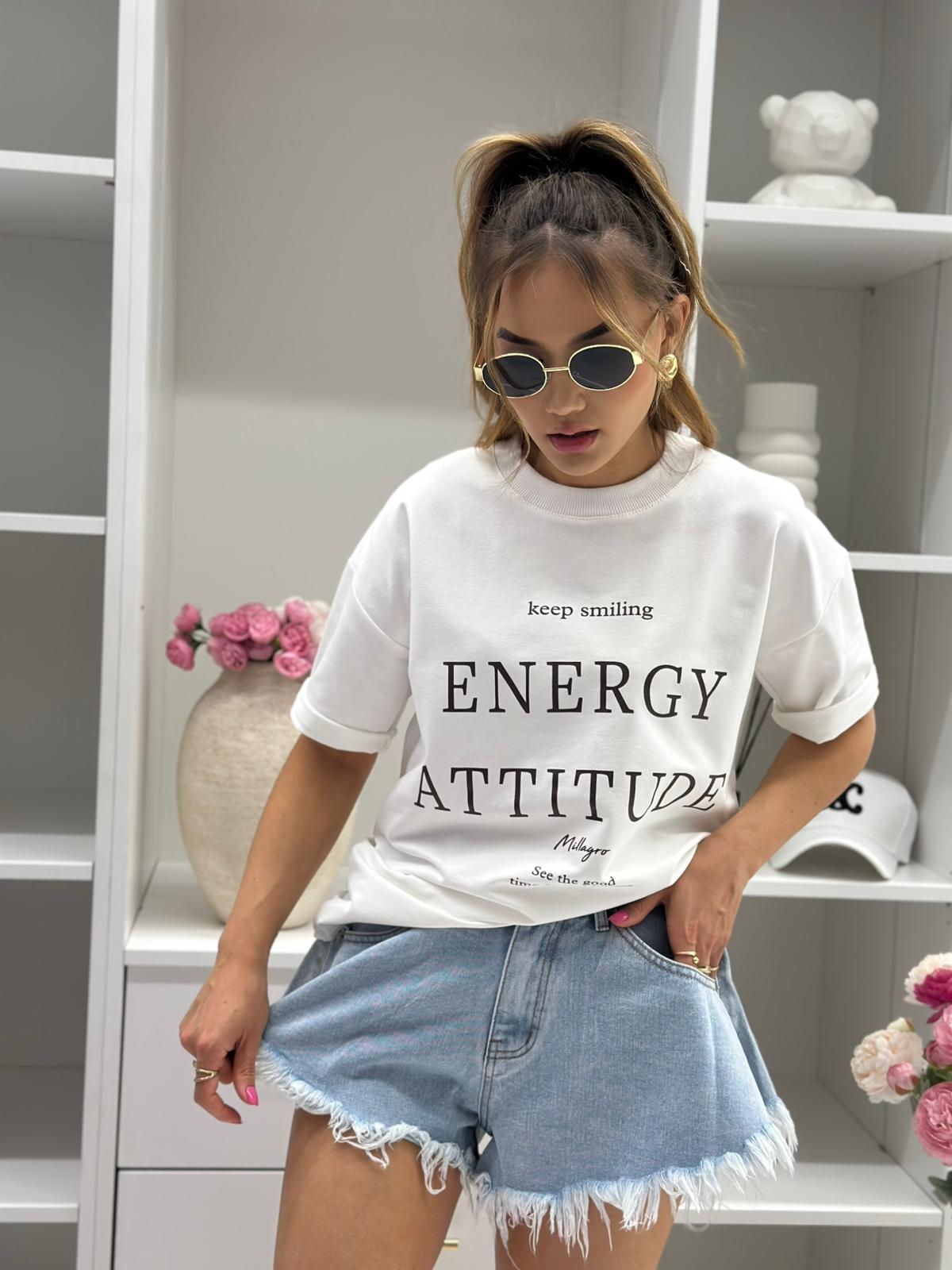 T-shirt Energy Attitude o kroju slim, wykonany z wysokiej jakości tkaniny De Lux, dostępny w przepięknych kolorach. Polska produkcja.