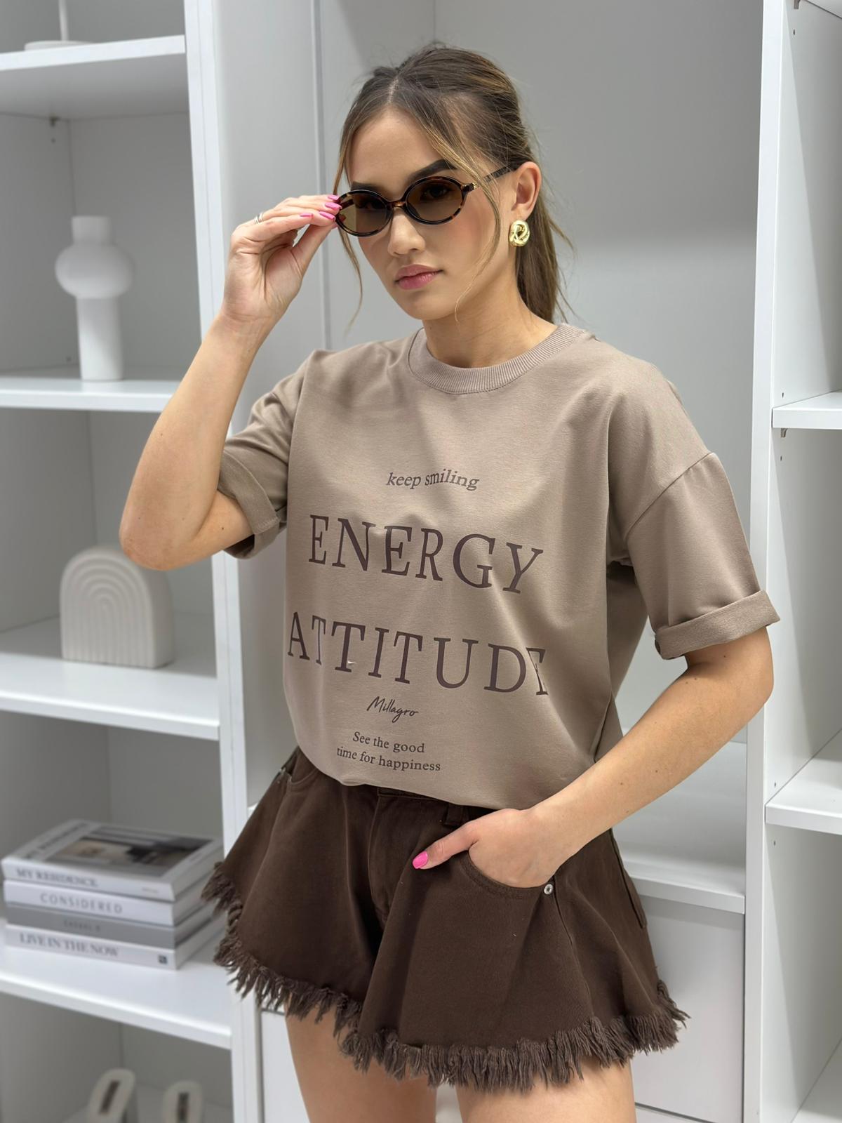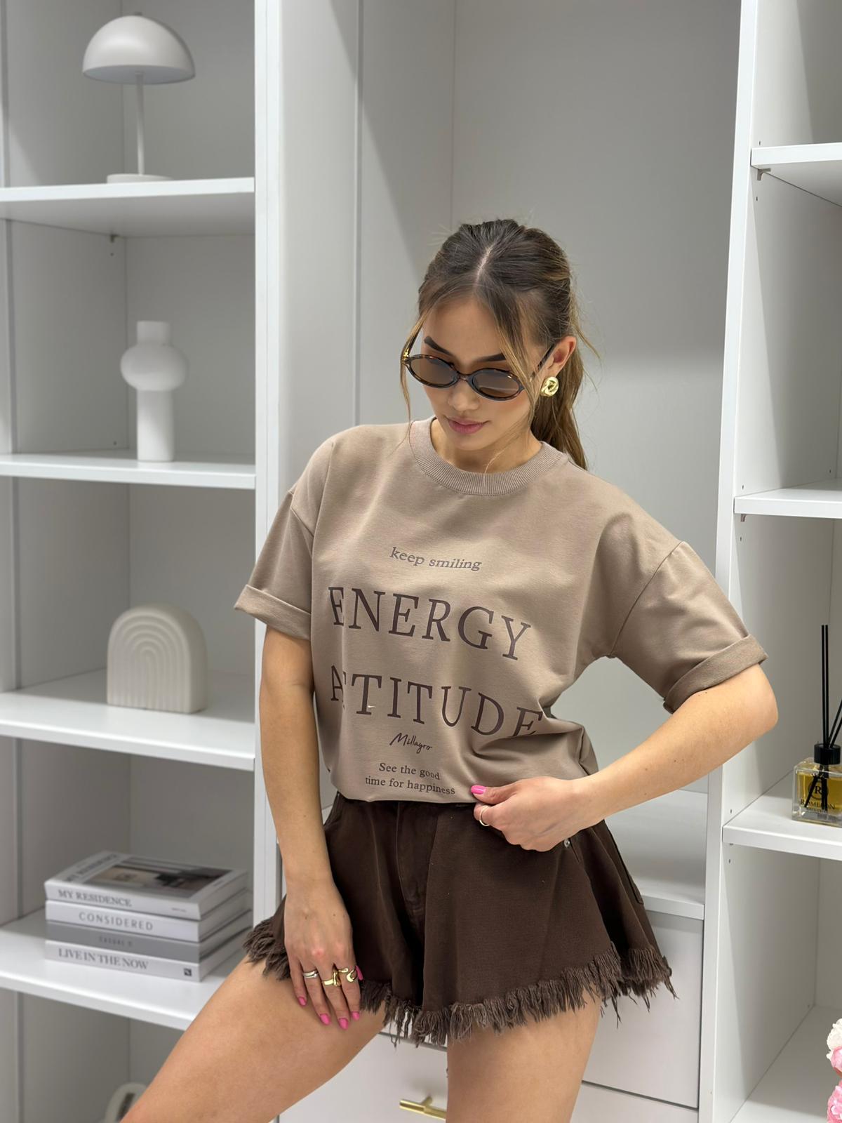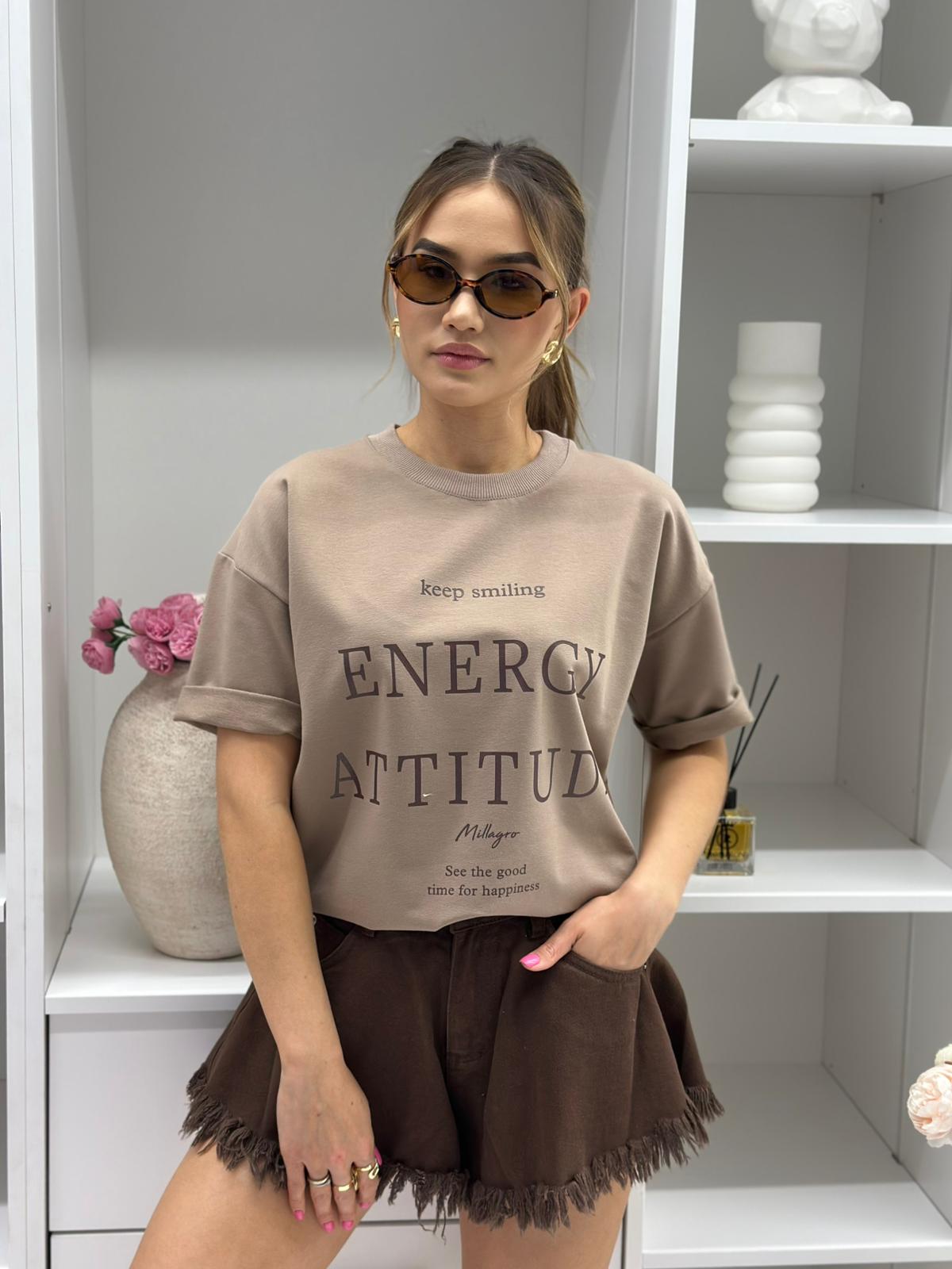 T-shirt Energy Attitude o kroju slim, wykonany z wysokiej jakości tkaniny De Lux, dostępny w przepięknych kolorach. Polska produkcja.