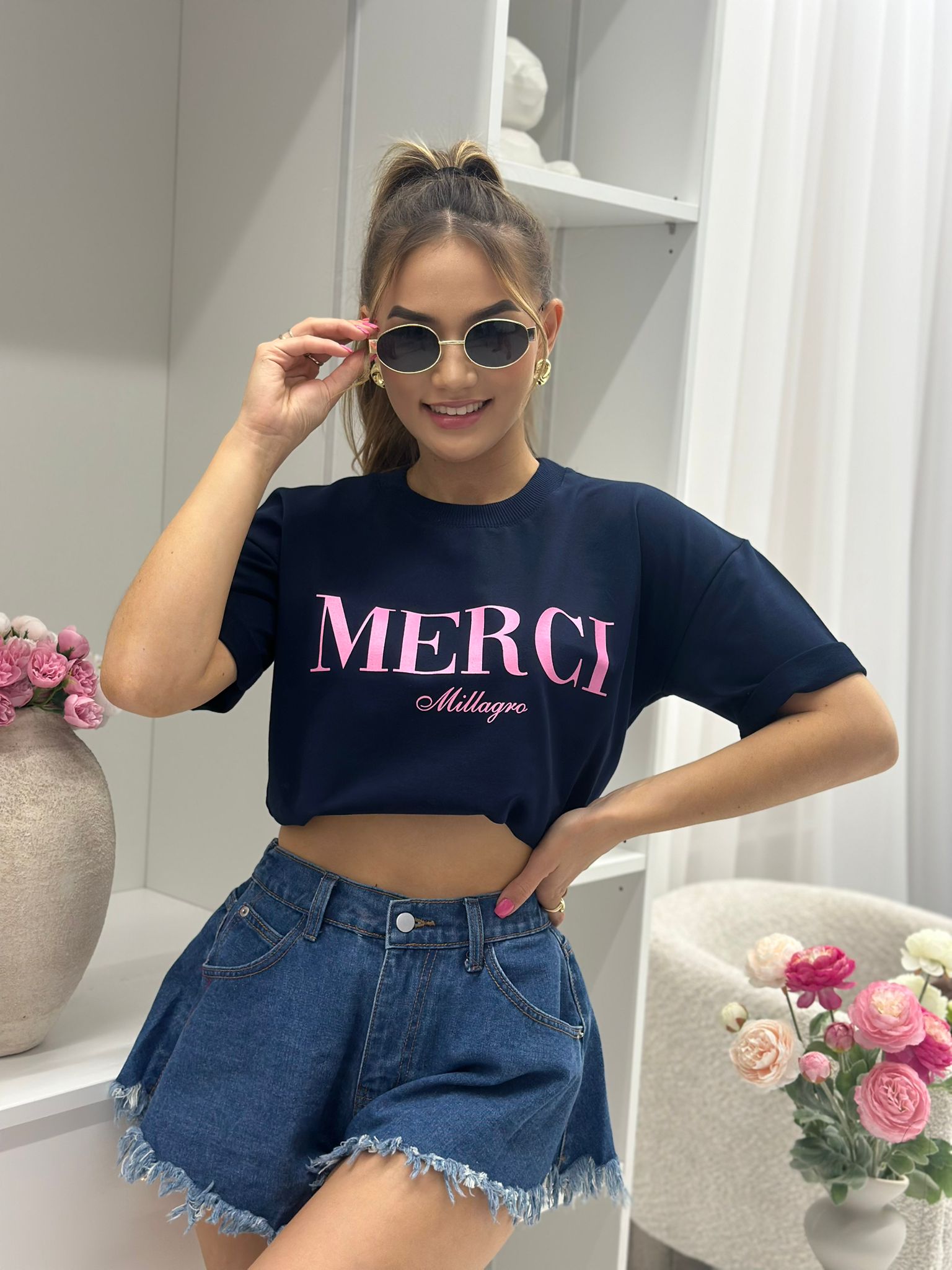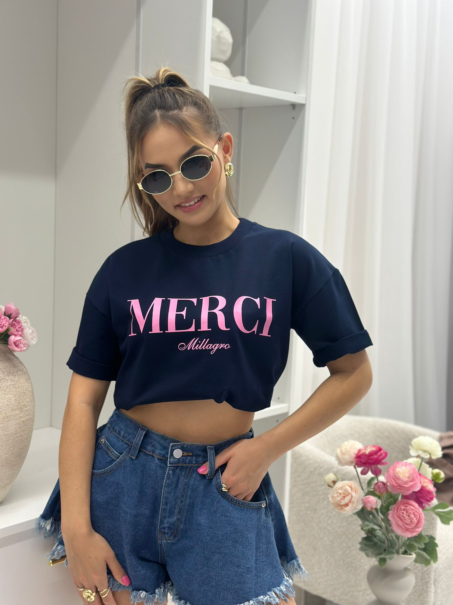 T-shirt MERCI luźny krój, wykonany z wysokiej jakości tkaniny. Polska produkcja.