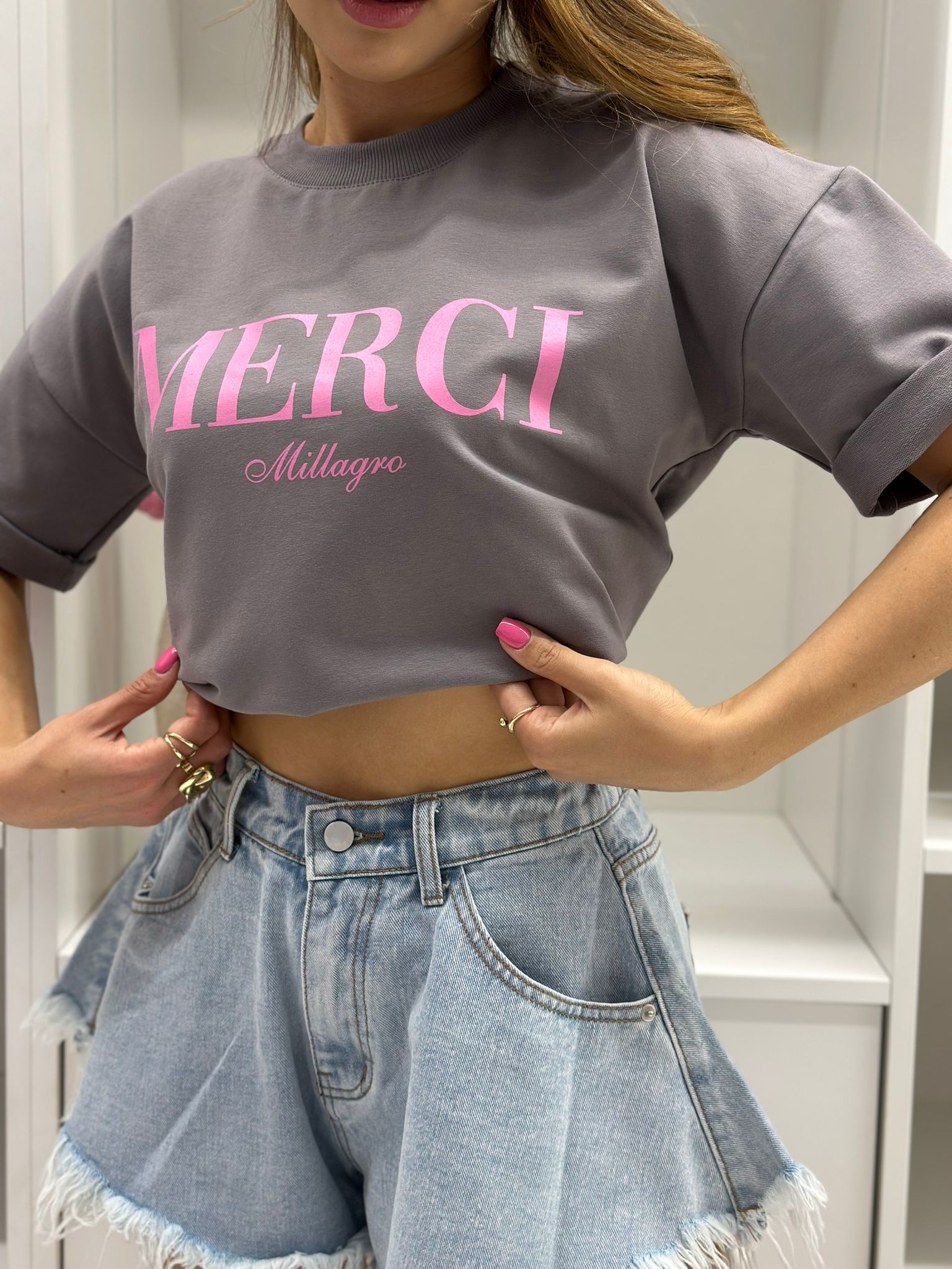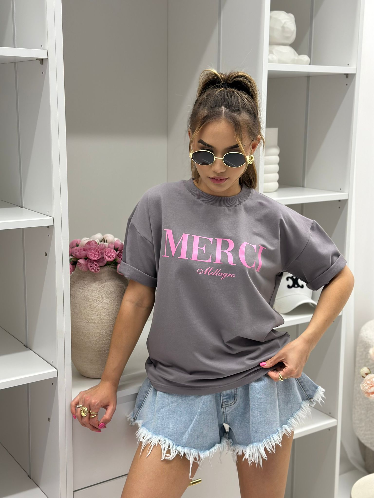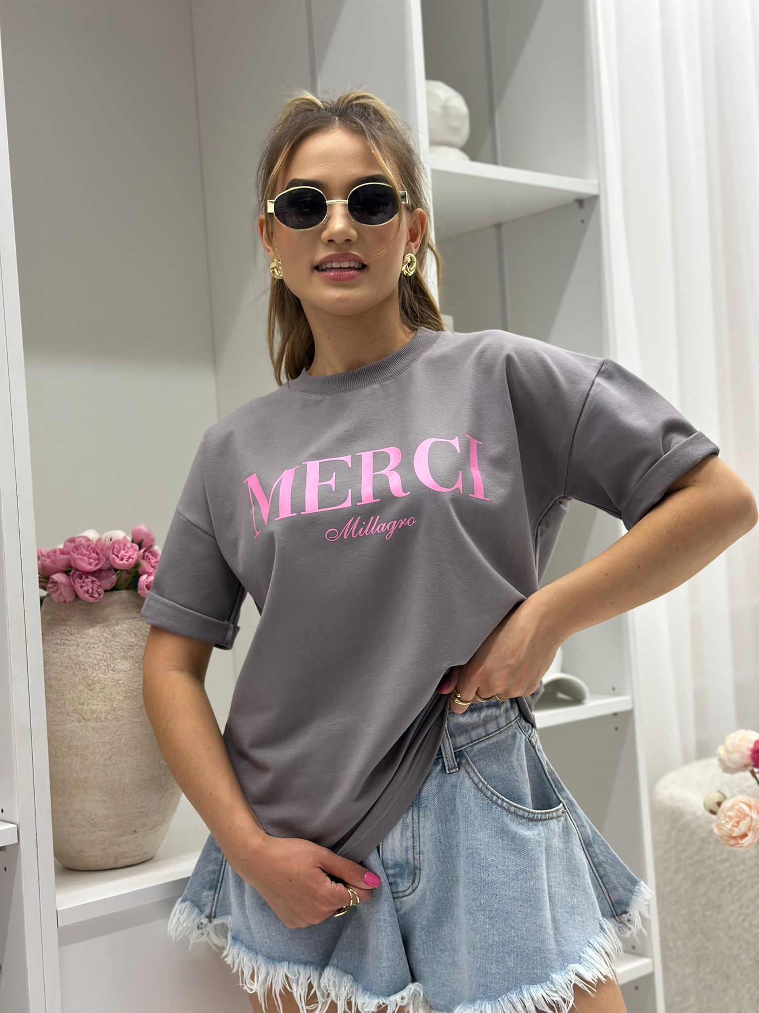 T-shirt MERCI luźny krój, wykonany z wysokiej jakości tkaniny. Polska produkcja.