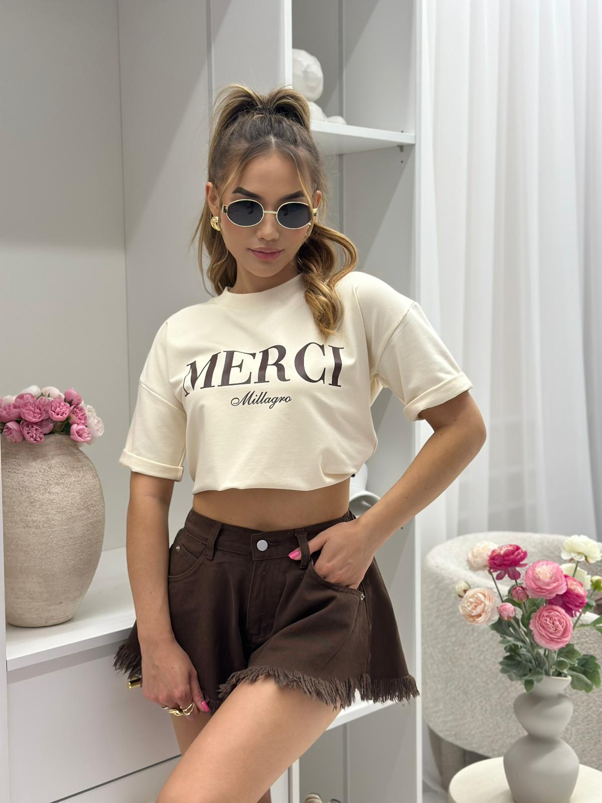 T-shirt MERCI / vaniliowy – czekoladowy napis