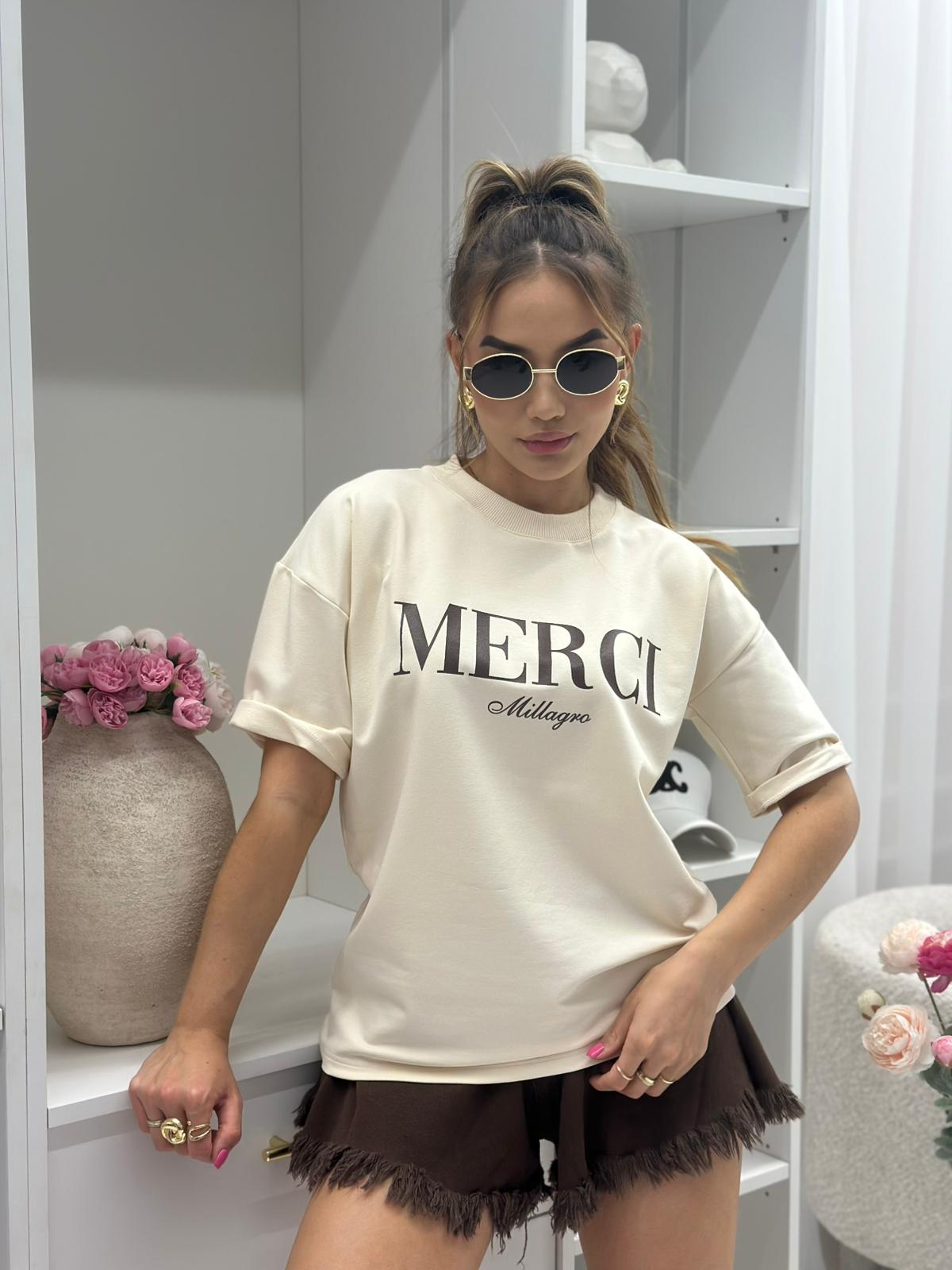T-shirt MERCI luźny krój, wykonany z wysokiej jakości tkaniny. Polska produkcja.