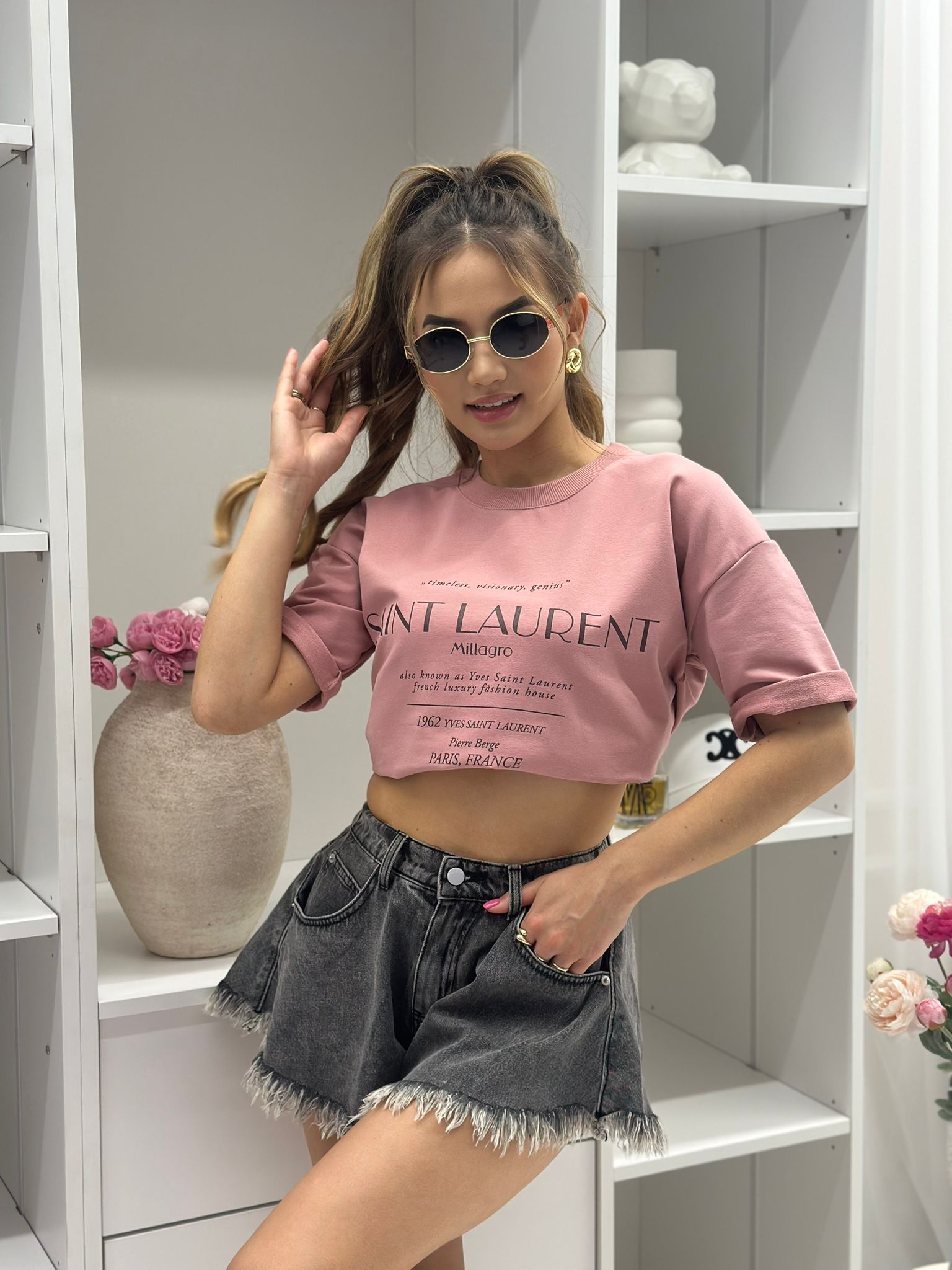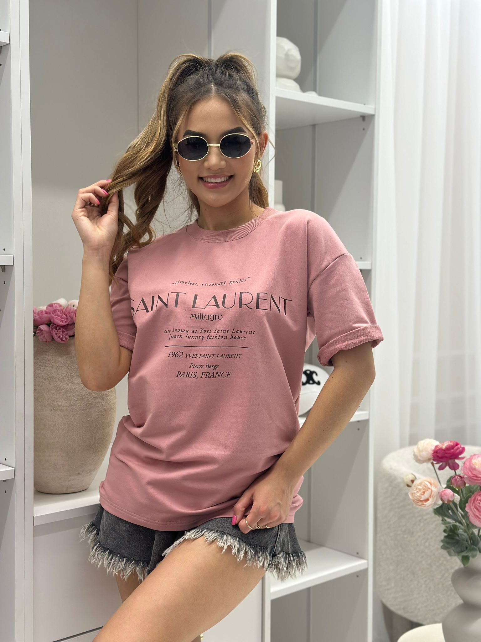 T-shirt Saint Laurent o kroju slim, wykonany z wysokiej jakości tkaniny De Lux, dostępny w przepięknych kolorach. Polska produkcja.